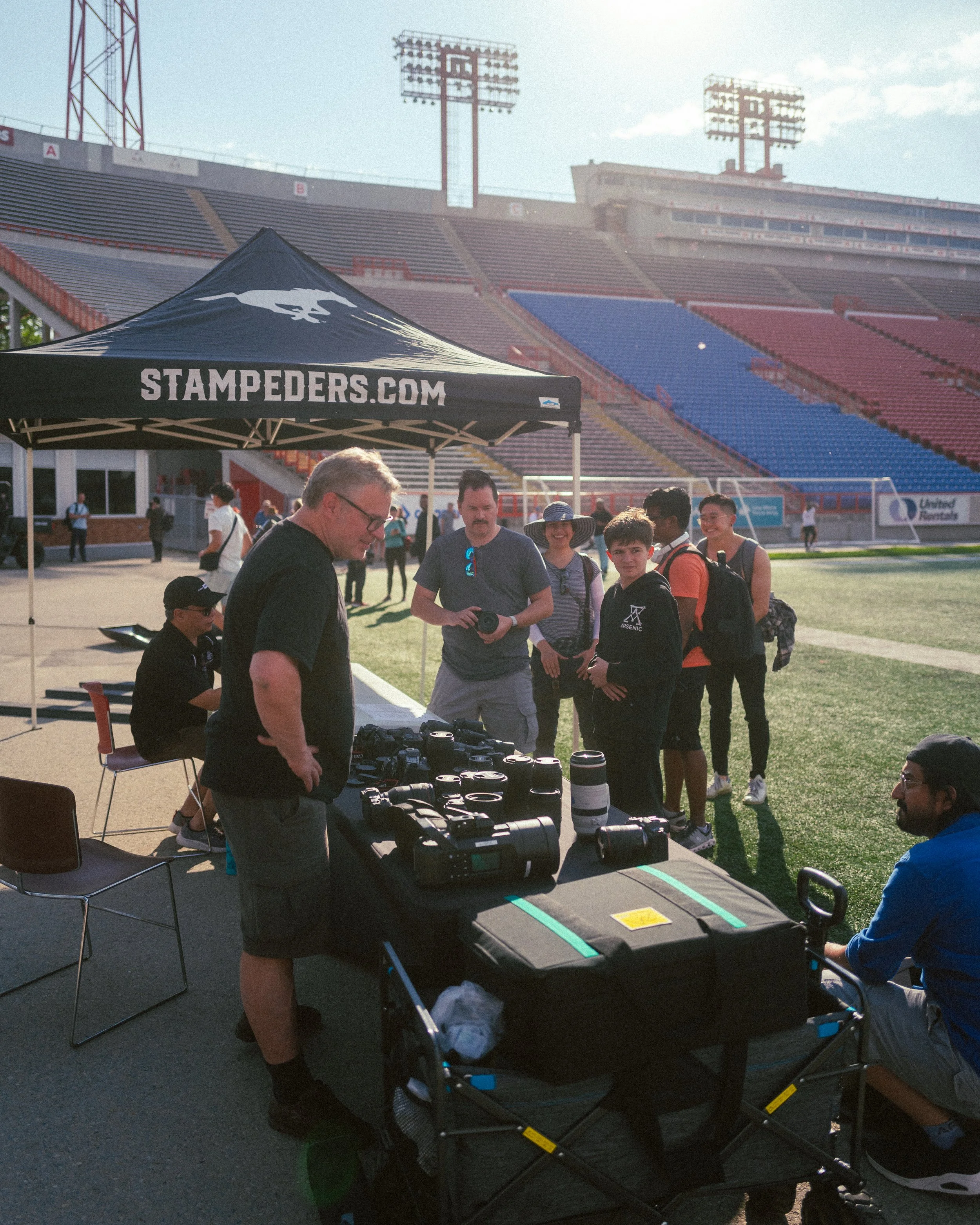 With the goal of connecting creatives and inspiring community through artistic outlets, the team at Socality felt that McMahon Stadium was a no-brainer for their next event in partnership with Canon Creator Lab. “The goal is to find venues that give creatives the opportunity to make something visually unique, and to give them access to a space they wouldn’t normally have access to,” said Socality’s Event Coordinator, Braden Dam. Holding true to the Socality vision, the team ensured that with private access to McMahon Stadium, event-goers could experience the field like never before. Not just from the bleachers or sidelines, but as the main event themselves. “Lean into the community,” Braden encouraged, “learn from one another, try out something new—something you’ve never done before.”